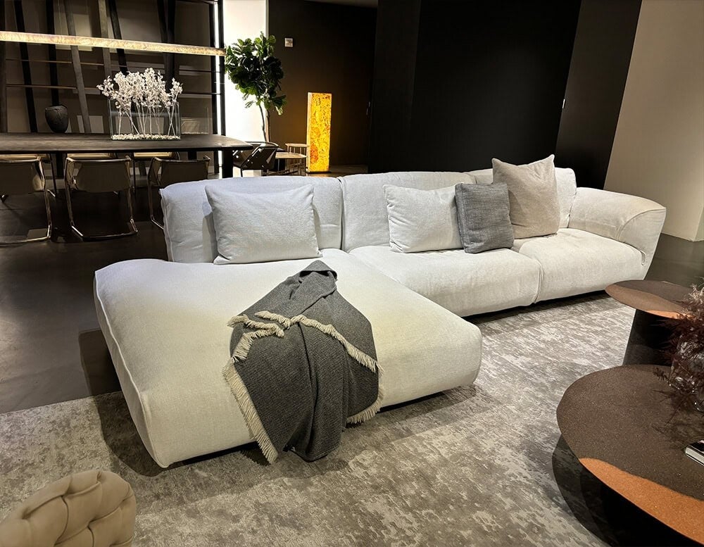 De tijdloze elegantie en de buitengewone eenvoud van de Grande Soffice doen denken aan classicisme. De lineaire vormen eindigen in zachte rondingen die er ui tzien als sculpturen. De indrukwekkede proporties maken een statment in de ruimte en de combinatie van hightech en natuurlijke materialen bieden een bijzonder comfortabele ervaring. De Grande Soffice is opgevuld met Gellyfoam en een royale hoeveelheid ganzendons; het resultaat is extreem comfort. Met het Smart Cushion kunnen de rugleuningen naar achteren worden geschoven voor ultieme ontspanning. Elk zitelement biedt plaats aan twee personen.