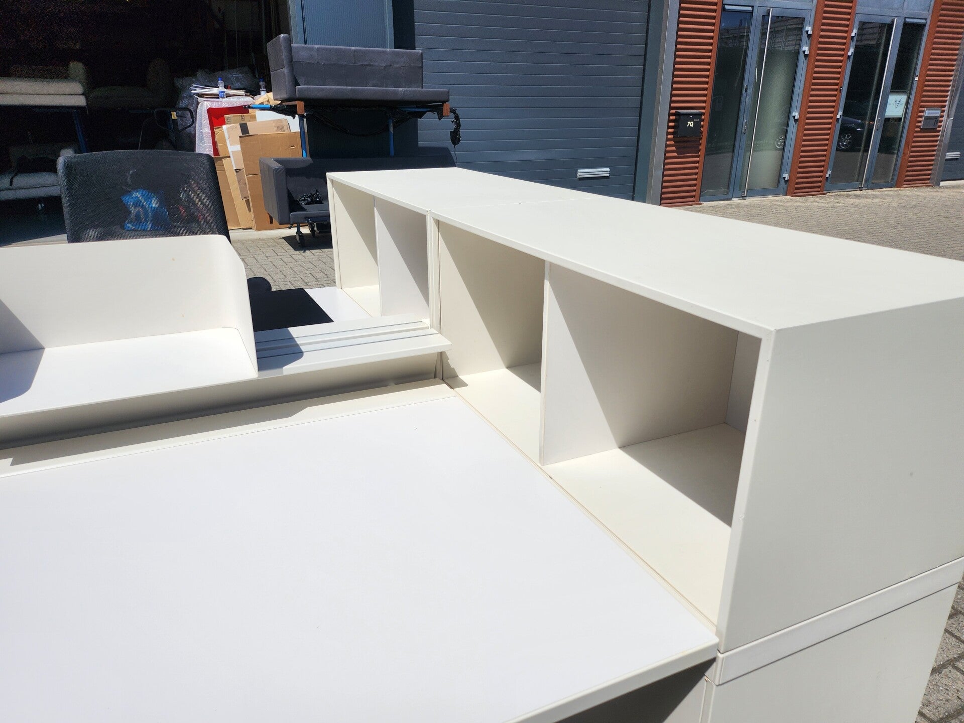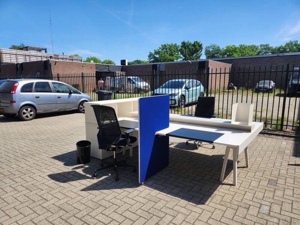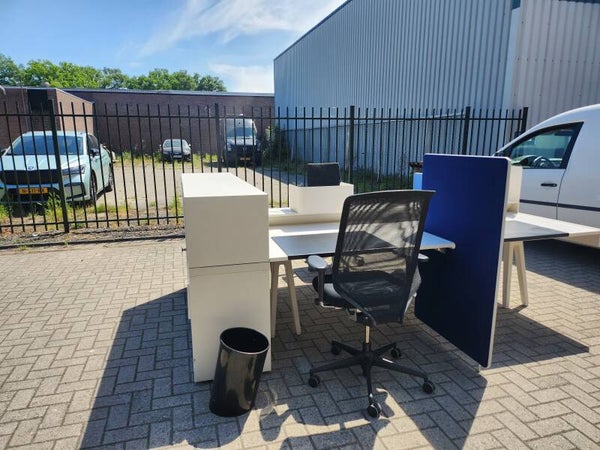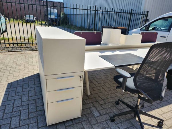 - Beide configuraties zijn inclusief ladeblok/kastenwand: 180x45x110cm , Design prullenbak, Vitra bureau onderlegger en scheidingswand(keuze uit totaal 4 verschillende opties)