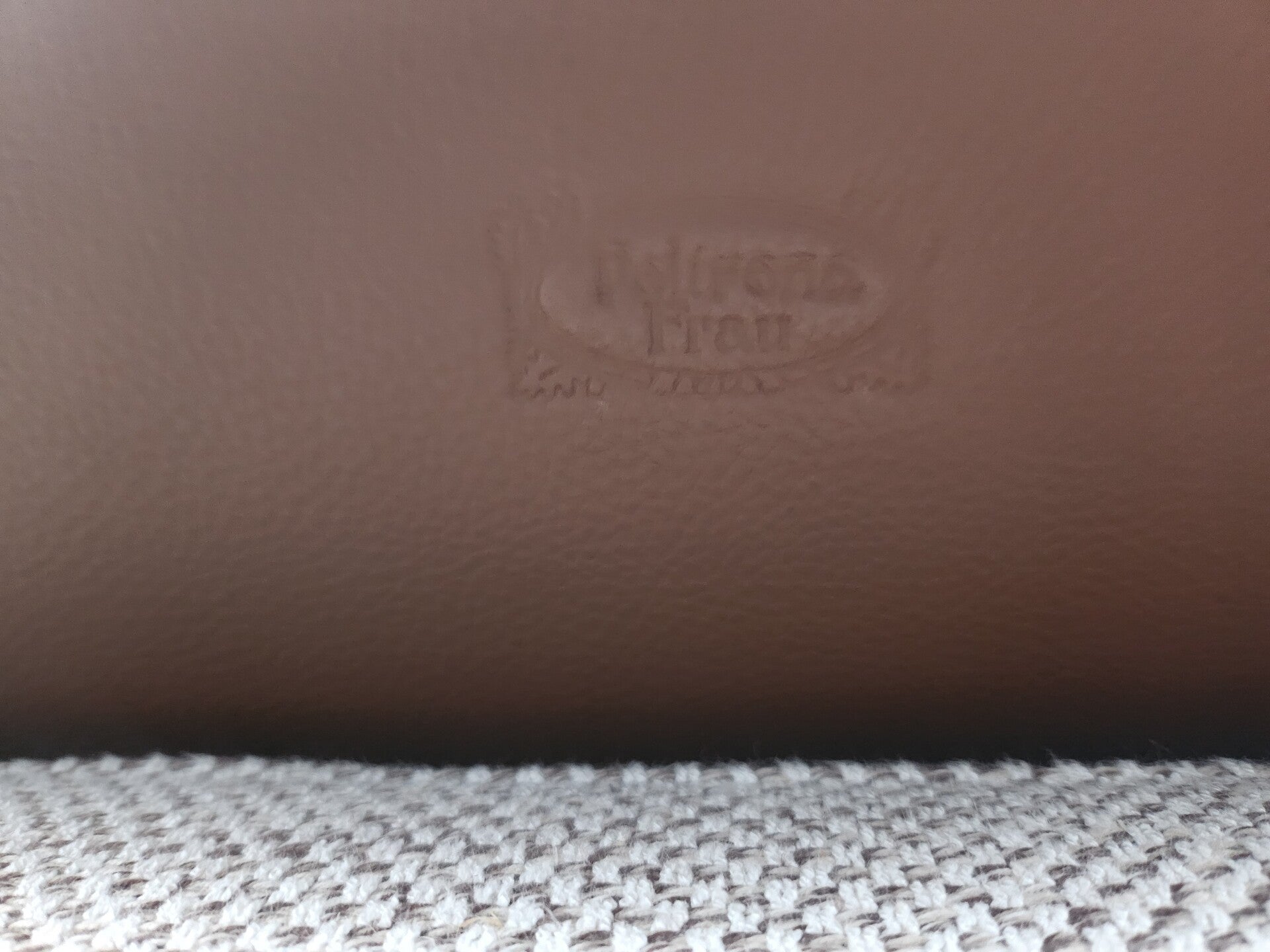 The structure and soft cushions appear to be suspended on leather bands. The foot, unexpectedly set back from the edge, enhances the sensation that the seats are floating in space. The purity of the design blends with the precious details. The visible leather and hide stitching evokes the luxurious workmanship of saddlery and harness.