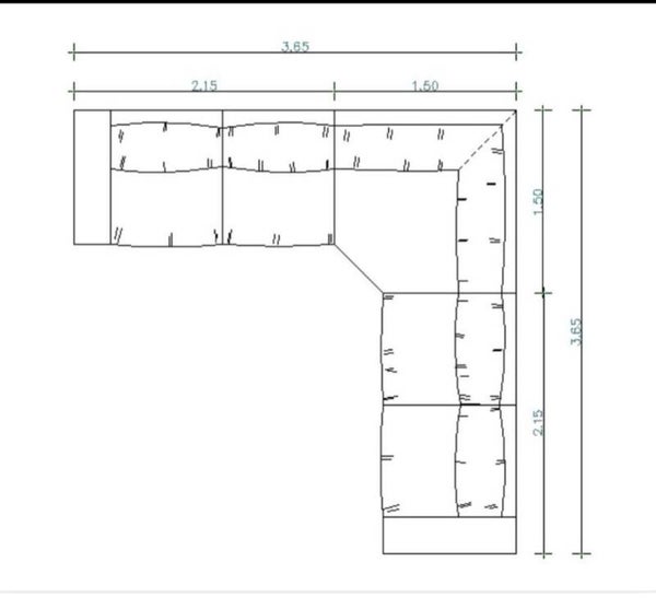 - Afmetingen: (zie foto) 365 x 365 cm; 2x element 215 cm 1x element 150 cm, H76 , zithoogte 40cm