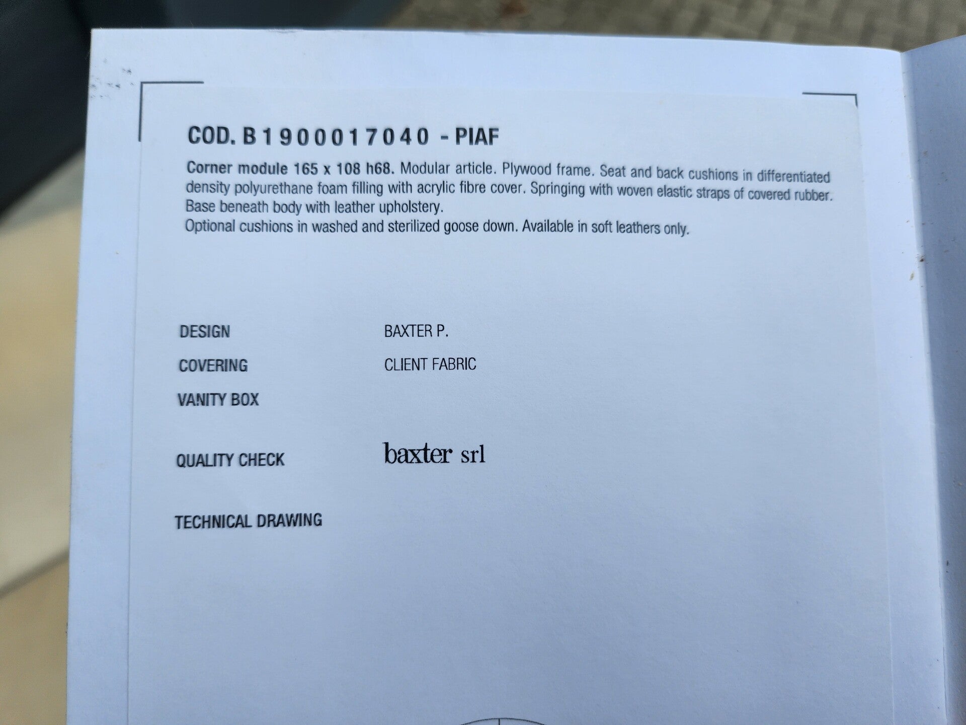 - Bekleding: Velours beige by Loro Piana